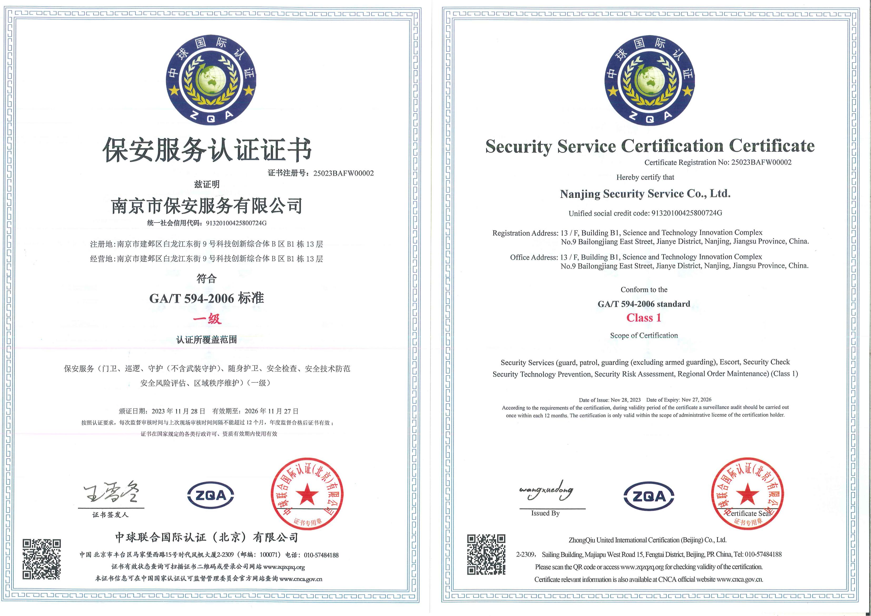 Established in April 1987, Nanjing Security Service Co., Ltd. is a large state-owned security enterprise with a long history of security operation and rich security experience. Now it is a managing director of both? China Security Association and Jiangsu?Security Association, vice president of? Nanjing Security Association, one of the top class security service companies in Jiangsu Province.